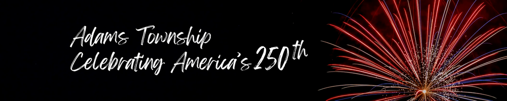 Adams Township is excited to announce that we are hosting Adams Township: Celebrating America’s 250th, on Wednesday July 1st starting at 5:00pm with the event culminating with fireworks at sunset. This event is designed to bring our community together and to celebrate not only Adams Township but also to commemorate the 250th year of our great nation. This event will cover over 9 acres of at the Adams Township Community Park with all types of entertainment. There will be food, live music, games, crafts, and activities for all ages.